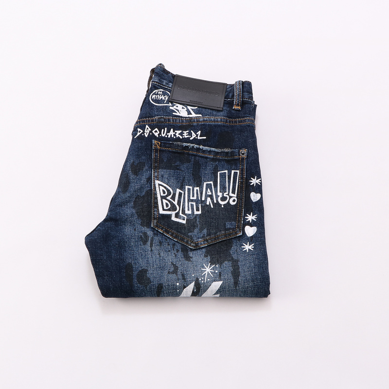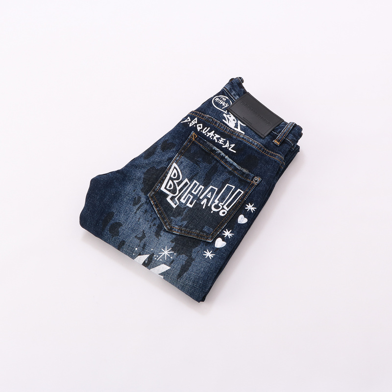 Dsquared2 Jeans blue printed ripped denim slim fit pants