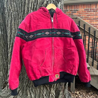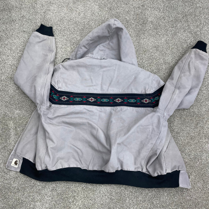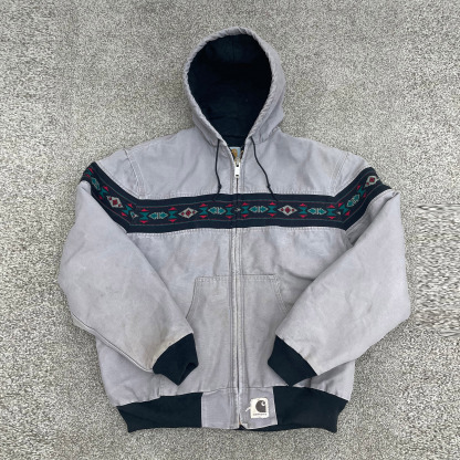 Contrast ethnic pattern lined zip-up jacket