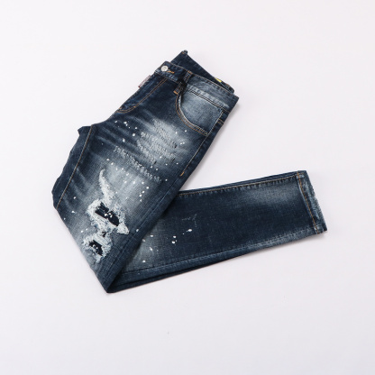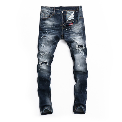 Dsquared2 Jeans dark blue ripped denim slim pants tie dye