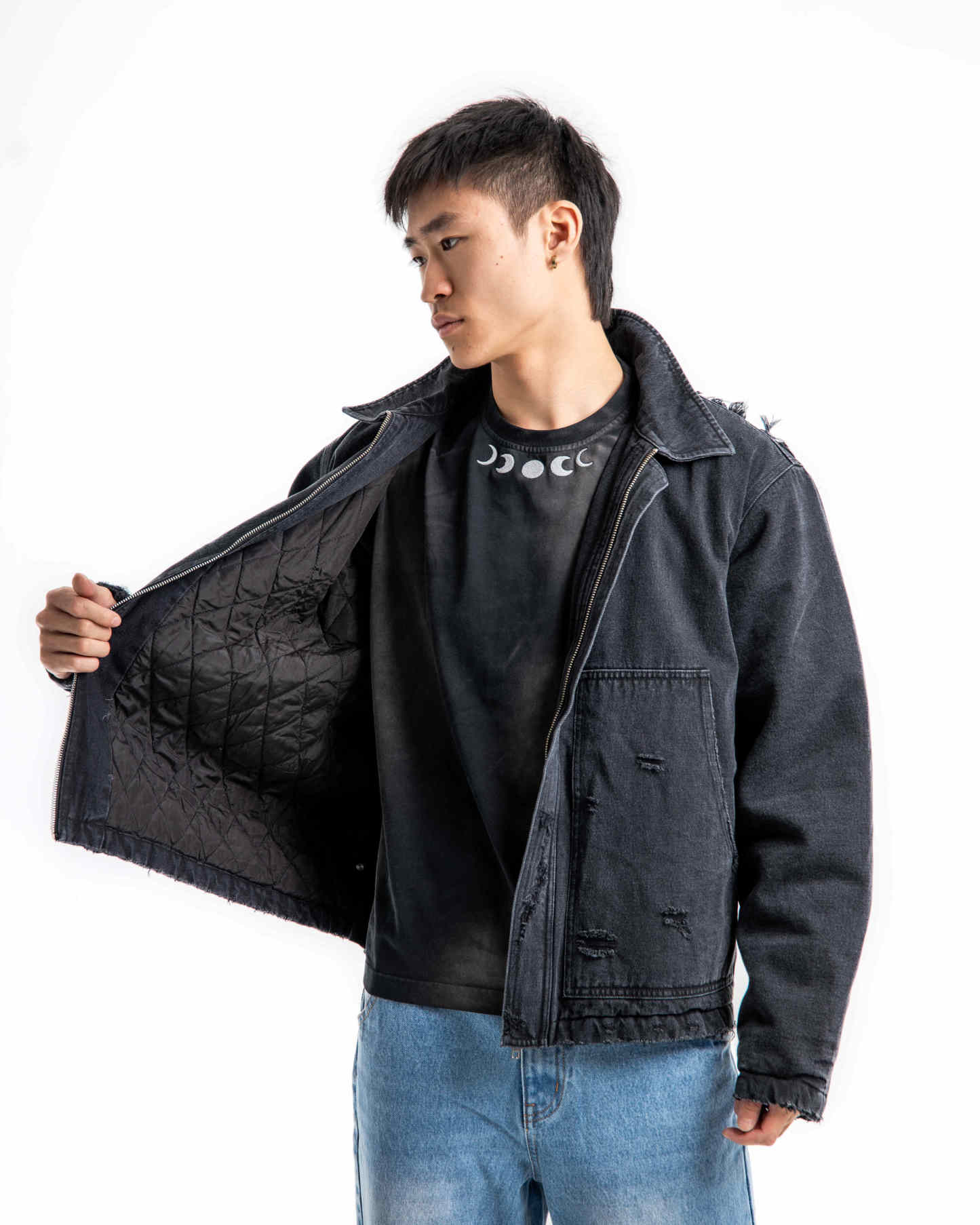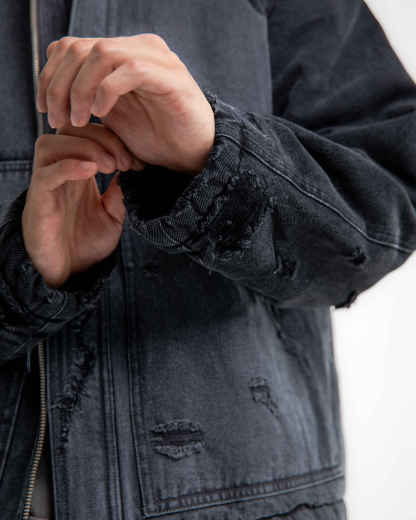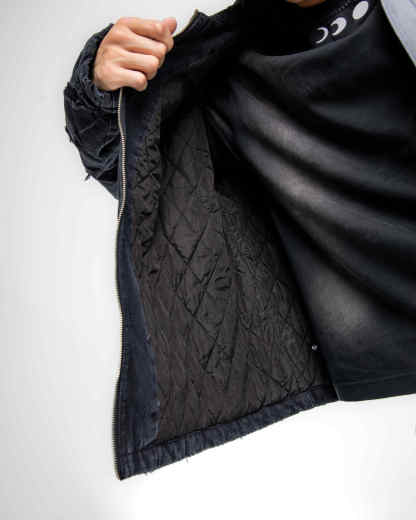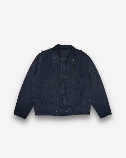 Medusa Embroidered Work Jacket with a relaxed fit, constructed from durable 12-ounce ringspun cotton duck. This jacket features a vintage wash, heavy distressing, and a 500,000-stitch Medusa embroidery on the back. Lined with quilted nylon and filled with 3MTM ThinsulateTM Insulation for warmth, it’s designed for both style and function.