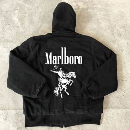 Knight Letters Printed Long Sleeve Zipper Multi-Pocket Jacket