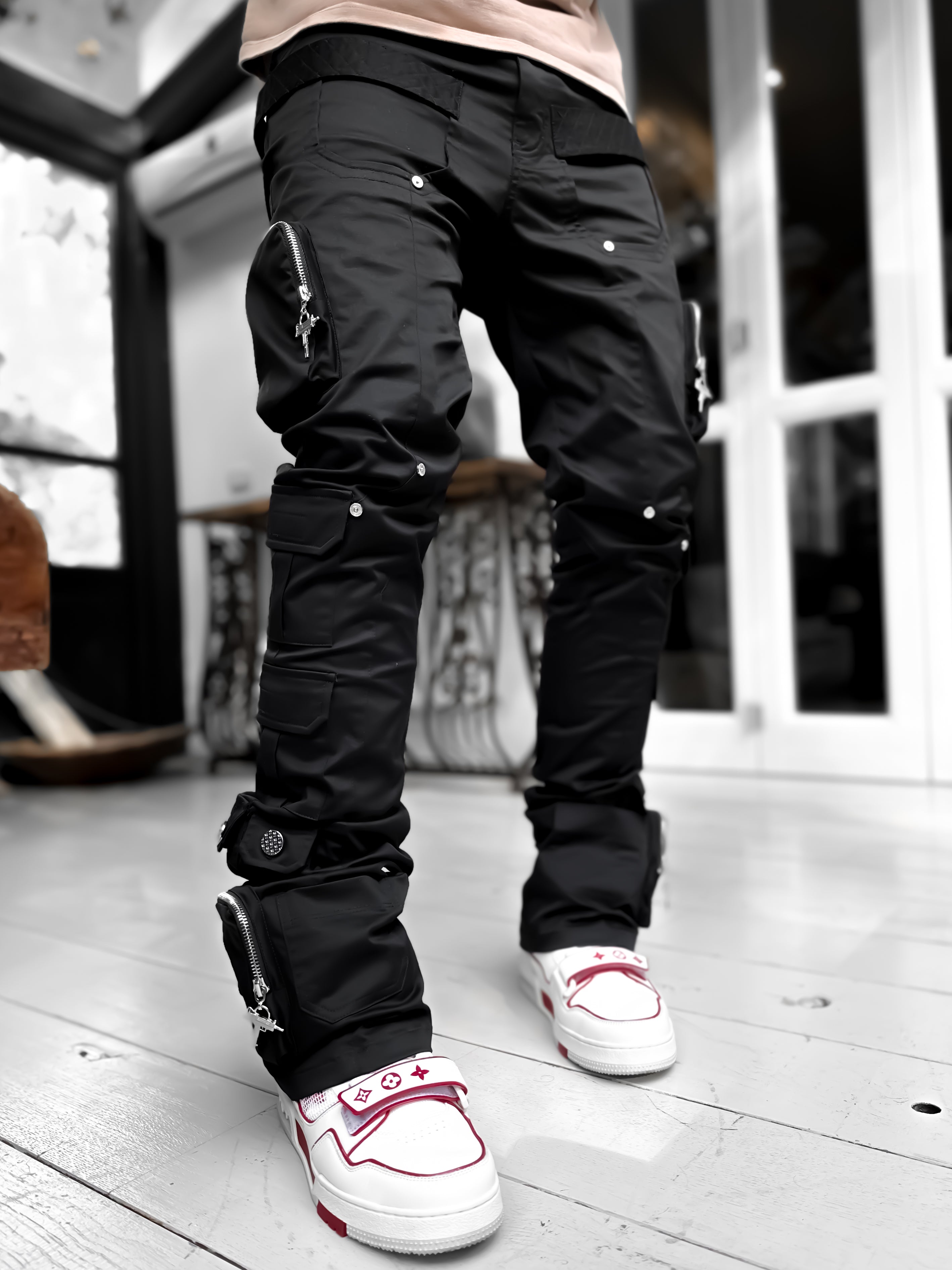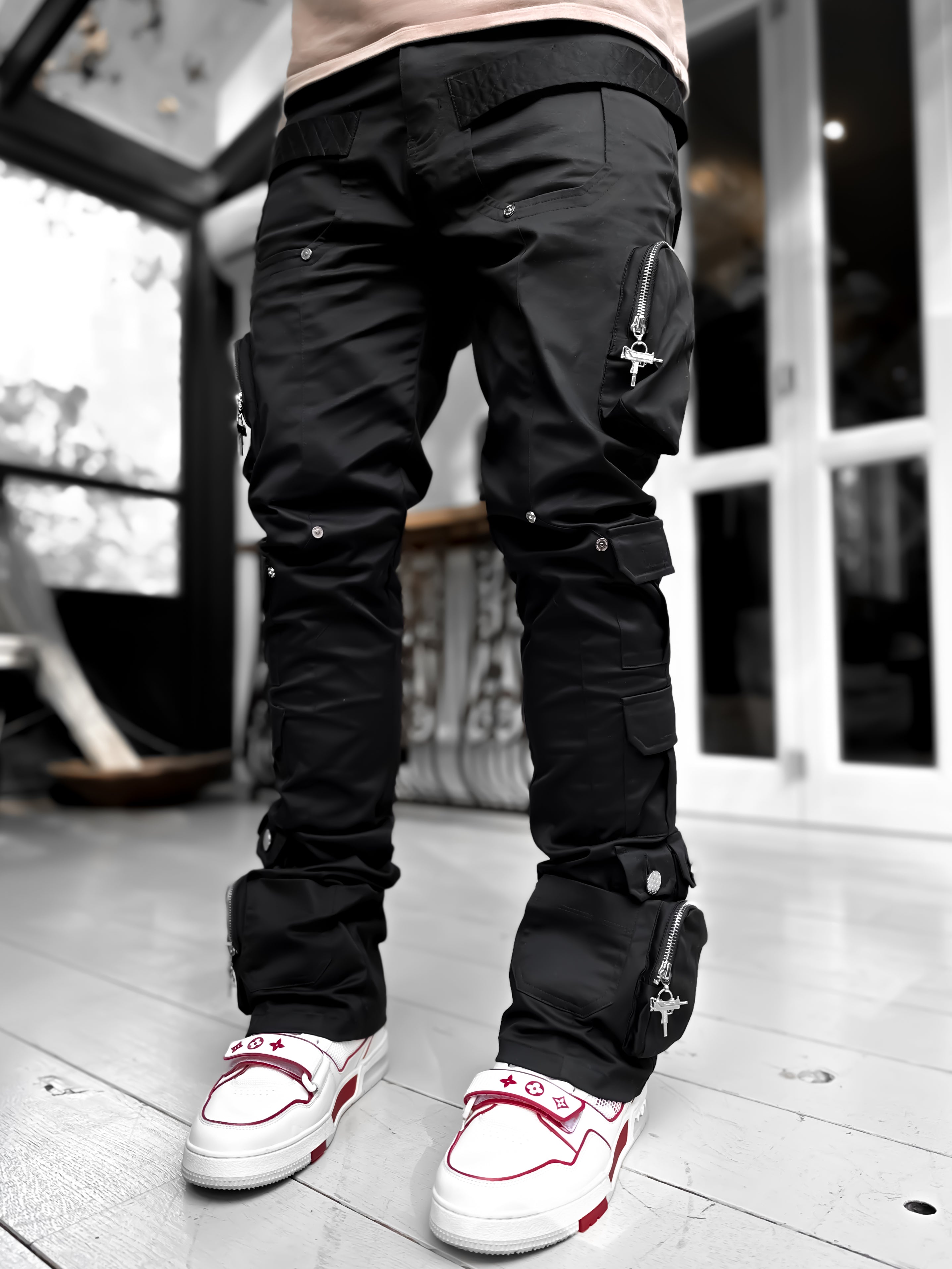 Obsidian Black Stacked Cargo Pant