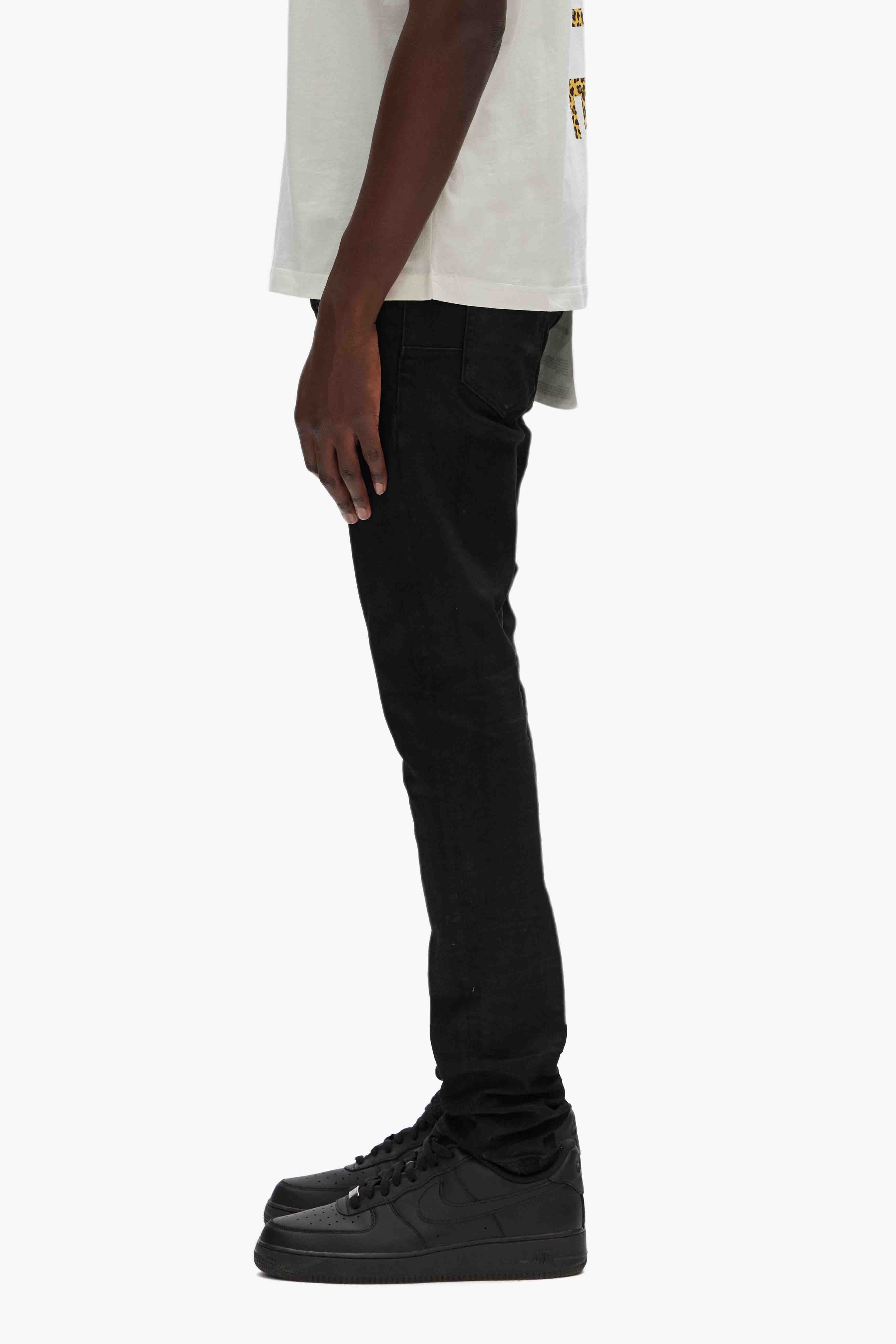 Constructed in a dark black wash, this elevated denim is designed with a light resin coating and 3D wrinkle treatment for a modern and sleek feel.