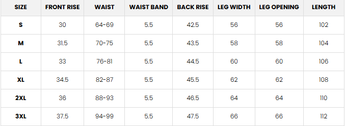 SIZE CHART-CM