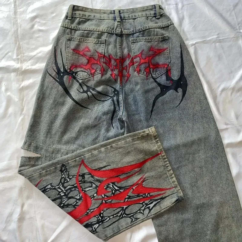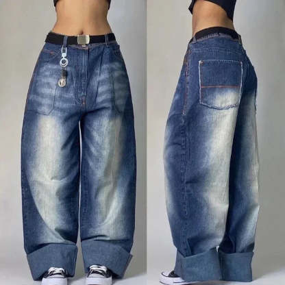 90s Streetwear Streetwear Retro Harajuku Men Women Baggy Jeans Y2K Pants Hip Hop Multi Pocket Blue Slouchy Gothic High Waist Wide Leg Trousers