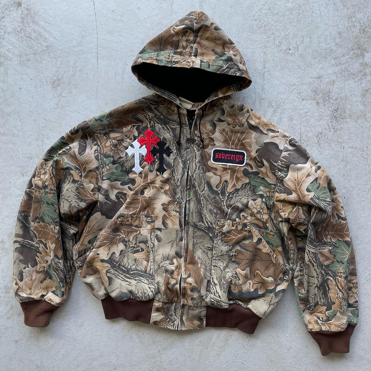 Tree Camouflage Vintage Cross Badge Zipper Jacket