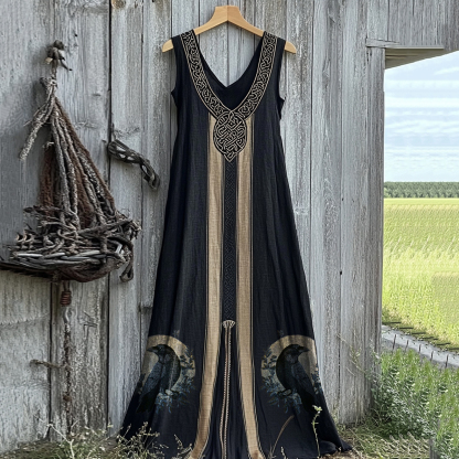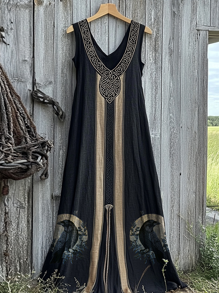 Vintage Viking Raven Celtic Knot Art Linen Tank Dress